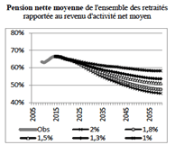 Cette baisse programmée est une conséquence du changement de mode d’indexation des pensions qui se fait sur les prix et non plus sur les salaires. Selon le rapport Moreau8, les effets de ce changement « peuvent être considérables sur des retraites servies pendant 20, 30 ans ou plus ». En particulier, « le taux de pauvreté des plus de 75 ans est en nette augmentation. Au sein de cette population, les femmes isolées (notamment les veuves) sont surreprésentées ».