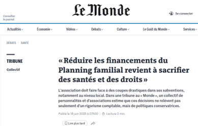 « Réduire les financements du Planning familial revient à sacrifier des santés et des droits »